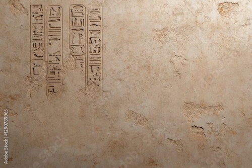 Ancient egyptian hieroglyphs carved on weathered stone wall