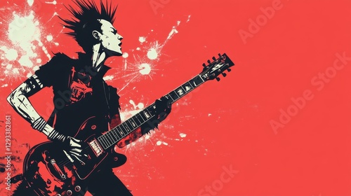 Fiery Guitarist in Action: A Powerful Rock Art
