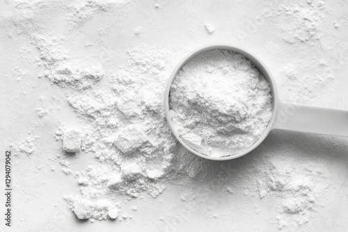Creatine Powder Measure with Sport Supplement Concept in White Background