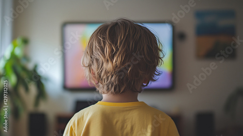 Vista de un niño desde atrás mirando un televisor