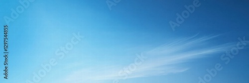 Clear blue sky with soft white clouds reflecting afternoon sunlight over a serene landscape during the summer. Generative AI