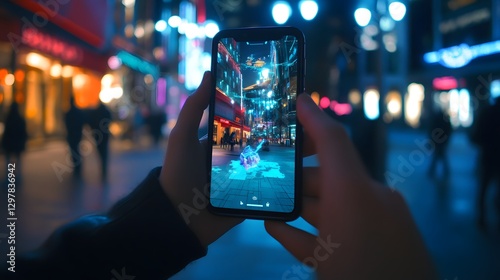 A high-tech ad for a new augmented reality game with interactive features shown on a smartphone