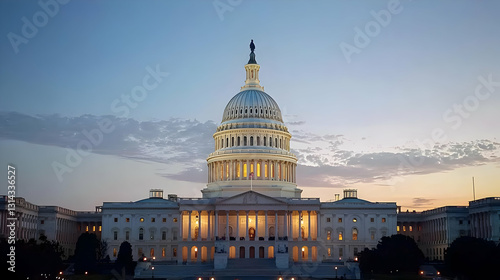 Illuminated United States Capitol Building At Dusk With American Flag Majestic Washington DC Landmark