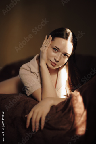 Beautiful woman home portrait in low key