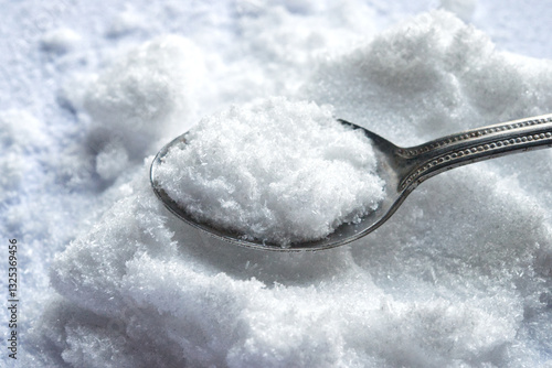 Close up of taurine powder on spoon.Taurine is an amino acid found in many foods, especially meat and fish. It supports heart health, muscle function, and energy production.