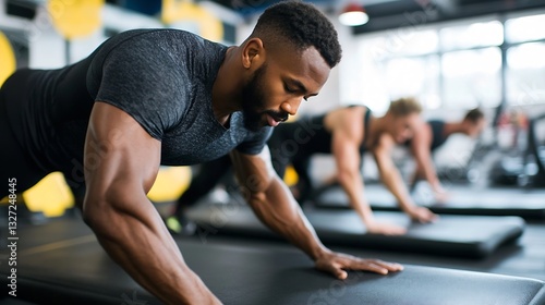 Dedicated Male Fitness Enthusiast Engaging in Upper Body Strength Training with Determination : Generative AI
