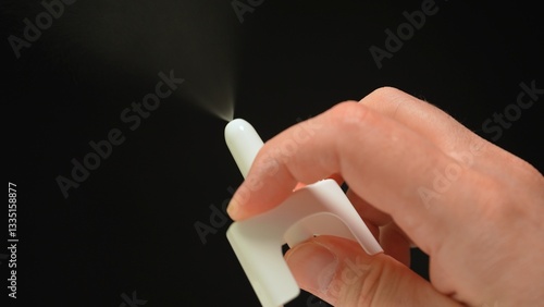 Naloxone nasal spray is life-saving medication used to reverse opioid overdose by quickly restoring normal breathing, isolated view on black background.