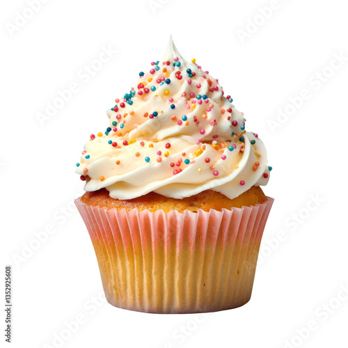 Delicious Cupcake Isolated on Transparent Background with Sprinkles