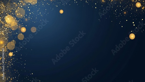 A dark blue background with golden glittering particles, light gold and navy colors, creating an atmosphere of celebration for New Year's Eve.
