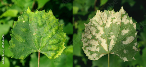 Grape erineum mite / Eri ophyes vitis/ Blister mite Colomeris / Vitis galls on a grape leaf