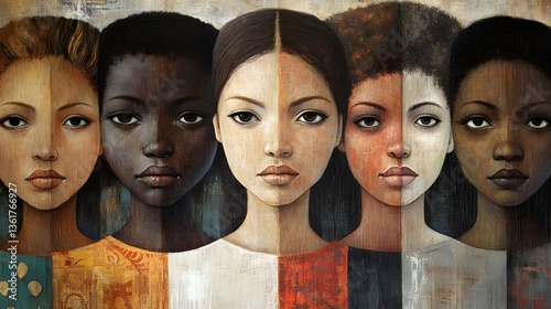 painting of four different faces of a woman with different hair