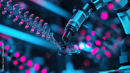 A robotic arm in a next gen research lab, assembling DNA sequencing machines with high precision for genetic research, Bio-tech style