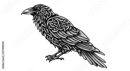 intricate Celtic raven design, with flowing interwoven lines forming the bird’s silhouette, inspired by ancient Gaelic art