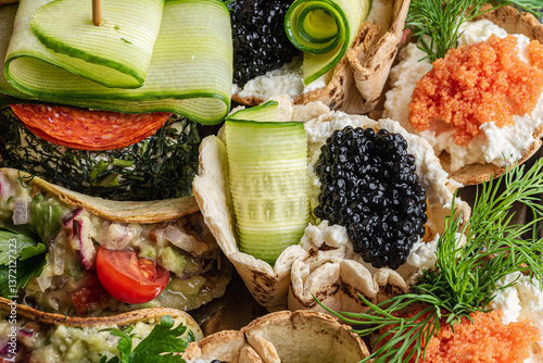 zimna płyta, kawior, salami, serek, ogórek, łosoś, jedzenie, świeży, posiłek, dekoracja, pomidor, płyta, dieta, delikatesowy, przepyszny, przekąska