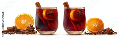 Mulled Wine Hot Beverage with Spices Citrus Aromatic Cinnamon Star Anise in Glass Cup for Winter Celebration