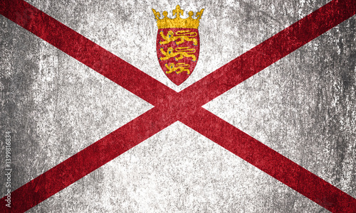Jersey State Flag. Dirty Jersey flag on metal surface.