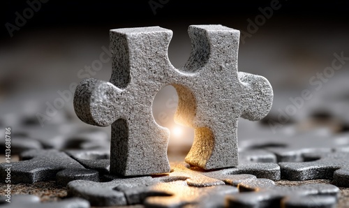 A single grey puzzle piece stands out, with a golden glow emanating from behind