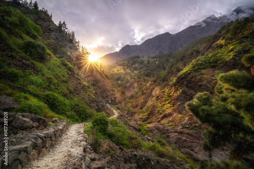Sonne scheint in die Caldera de Taburiente auf La Palma