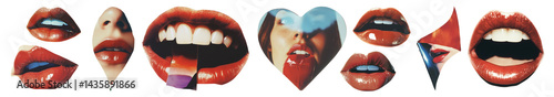 PNG Artistic collage of vibrant lips, element set on transparent background