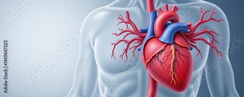ischemic heart disease illustration, showing narrowed coronary arteries and reduced blood supply to the heart muscle, detailed art