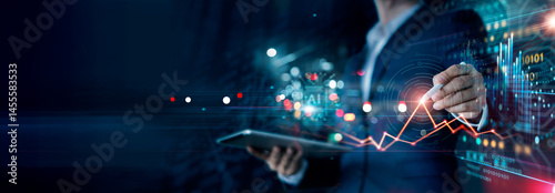 Business economic profit growth on global business network, Data analysis of financial and banking, Stock, Technology and data connection, Ai, investment, Business plan and strategy.