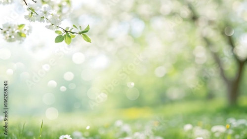 Blossoming flowers in nature blur background vibrant spring scene soft focus environment