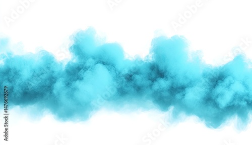Light teal colored smoke clouds against white background. Dense, puffy formations create a horizontal band across the image. Visually appealing and suggestive of a vaporous or ethereal scene