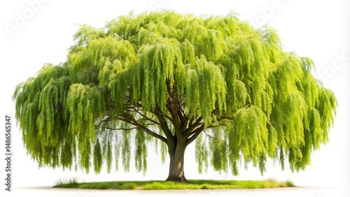 Majestic Weeping Willow Tree with Lush Green Canopy Against a White Background