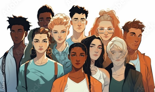 Portret grupowy zróżnicowanej grupy młodych dorosłych