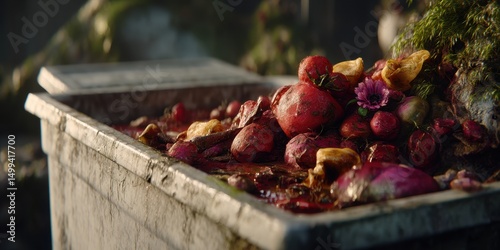 Zgniłe warzywa i owoce w pojemniku na odpady organiczne