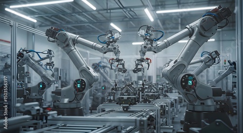 robots working on a serial assembly line