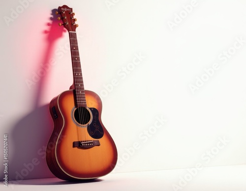 Acoustic Guitar in Studio, Sunburst Finish, Musical Instrument