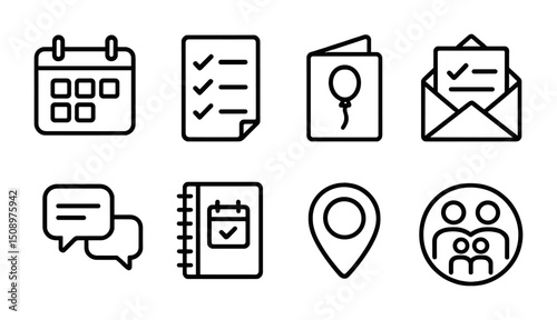 Event planning icons for invitations and organization projects