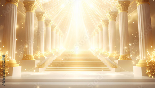 光に満ちた荘厳な黄金の神殿と天への階段