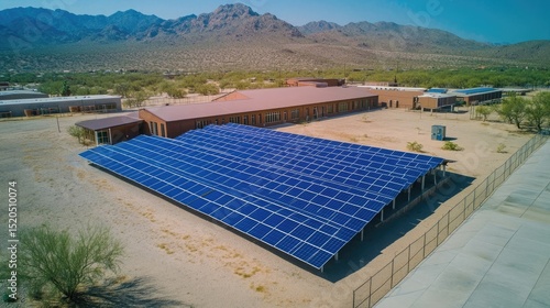 Close up of off-grid renewable energy systems for schools providing solar, wind, and battery storage solutions to power educational institutions in remote or underserved areas