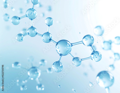 3D Molecular Model Water Molecule Structure and Firefly Illustration
