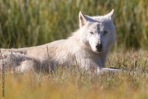 A wild grey wolf in the back country of Katmai National Park in Alaska.
