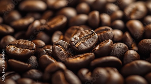 Roasted coffee beans closeup food texture dark brown background caffeine aromatic fresh morning drink energy