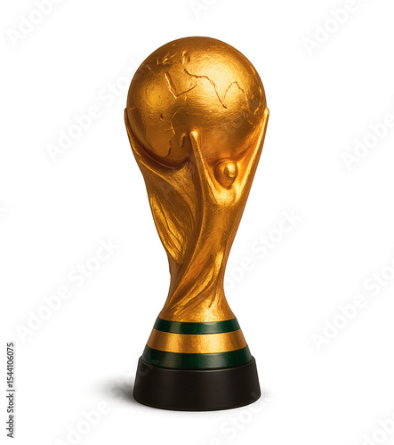 Trofeo inspirado en la copa del mundo con base negra y dorado con detalles verdes no oficial. Competiciones interancionales. World Cup trophy.