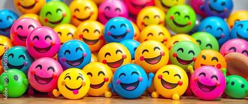 Joyful rainbow-colored emojis forming a playful scene, festive, playful