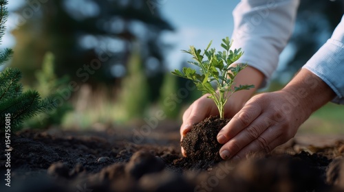 Hands gently plant a vibrant green seedling in rich soil symbolizing growth and sustainability fostering environmental stewardship and a connection to nature