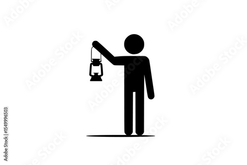 a black silhouette of a man holding a lantern in his hand black, hand, hold, icon, lamp, lantern, man, person, sign, silhouette, wall, website , Generative art.