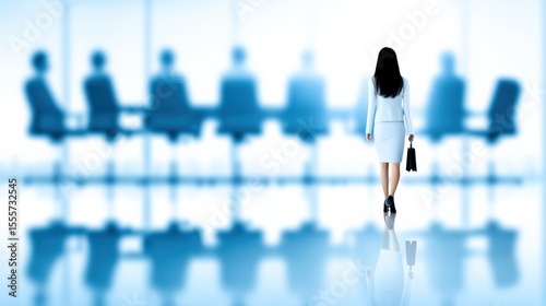Empowered woman walking into a business meeting corporate office professional setting modern environment confident viewpoint