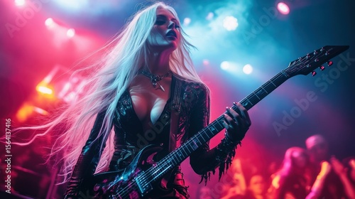 Woman guitarist performing on stage