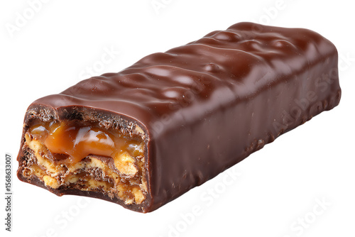 Delicious chocolate bar with caramel and biscuit filling isolated on transparent background