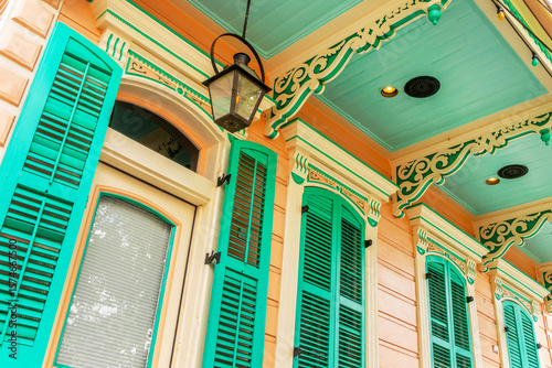 Close up of a colorful wooden house, creole cottage architecture in New Orleans, Louisiana