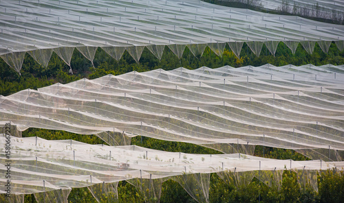An intensive organic cultivation of apples covered with anti-hail antiparasitic net
