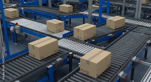 滑らかな動き 箱 流れる コンベヤーベルト 工場風景