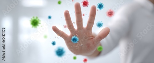 The hand demonstrating protection against viruses and germs in a clean environment.