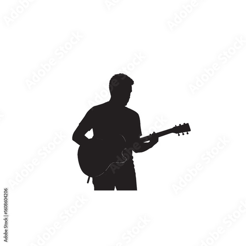 Guitar Player Silhouette on White Background – Vector Illustration for Music, Performance, and Artistic Expression Concepts